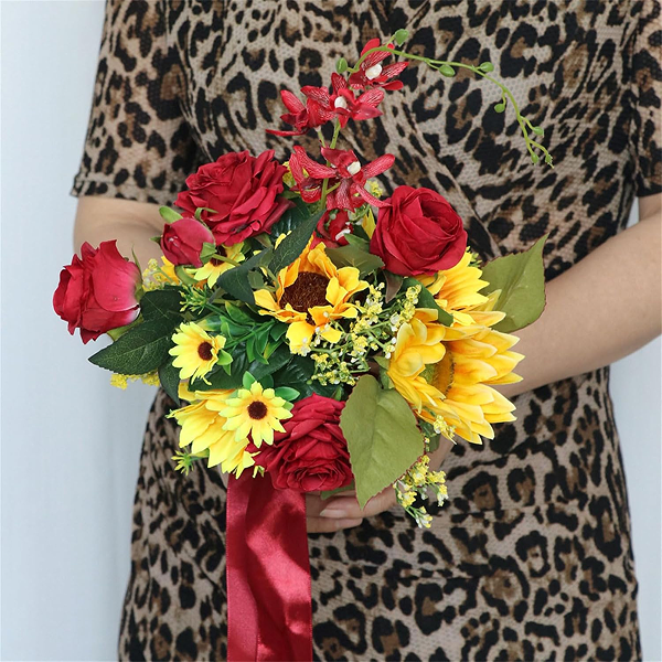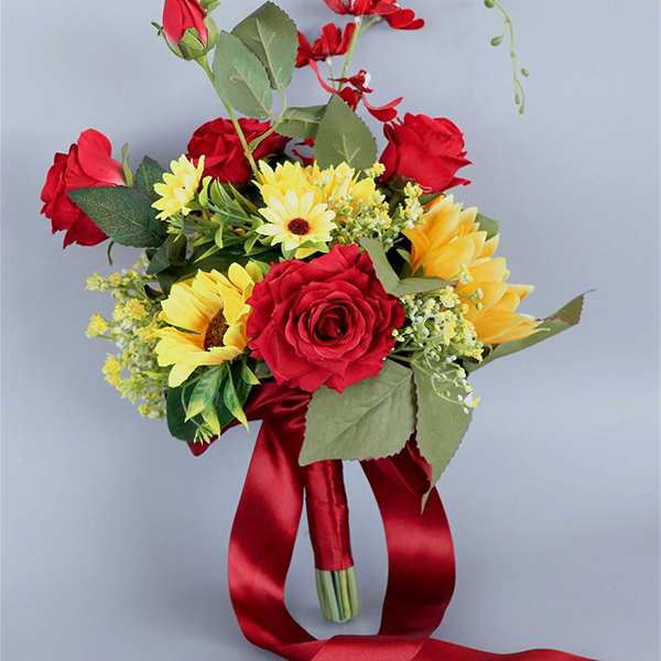 The wedding bouquet is silk fabric. Silk bouquets do not wither in the heat or freeze in the cold, making the best in all weather conditions