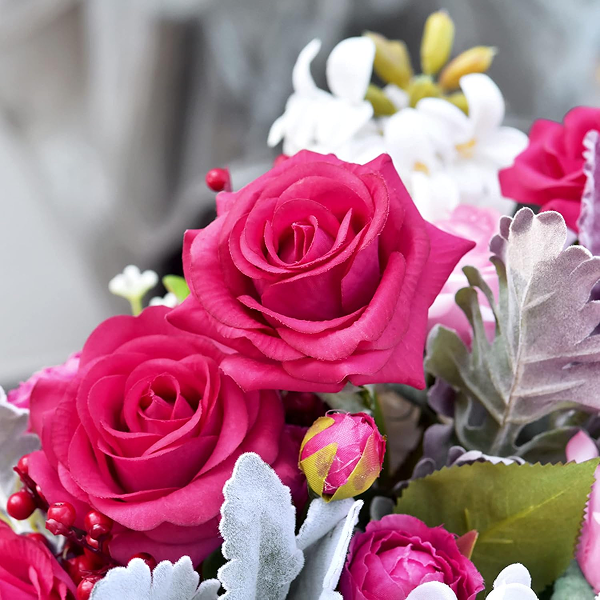 When the silk roses arrive, keep the stems upright, or bend and trim to any shape. The plastic stem is supported with an internal metal wire, feel free to reshape with ease for creative DIY floral designs.