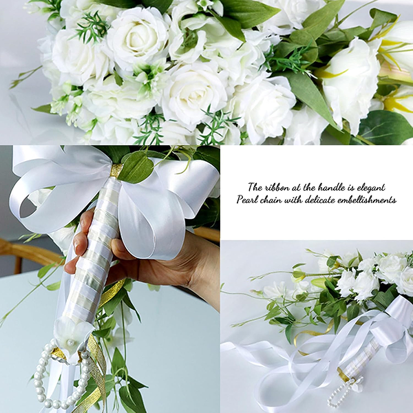 Realistic Details and Quality Materials: This bridal bouquet is meticulously crafted with artificial roses and quality silk fabric, ensuring a realistic and elegant appearance. The clean and lifelike artificial flower materials make this bouquet a stunning accessory for any bride.